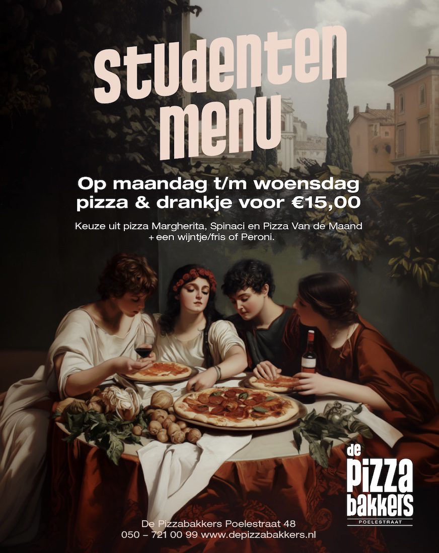 Zin in een lekkere pizza? Maak dan op maandag tot en met woensdag gebruik van de slimme studentendeal van Pizzabakkers. Ontvang een pizza en een drankje voor 15 euro! De korting is geldig tot 10-11-2026.