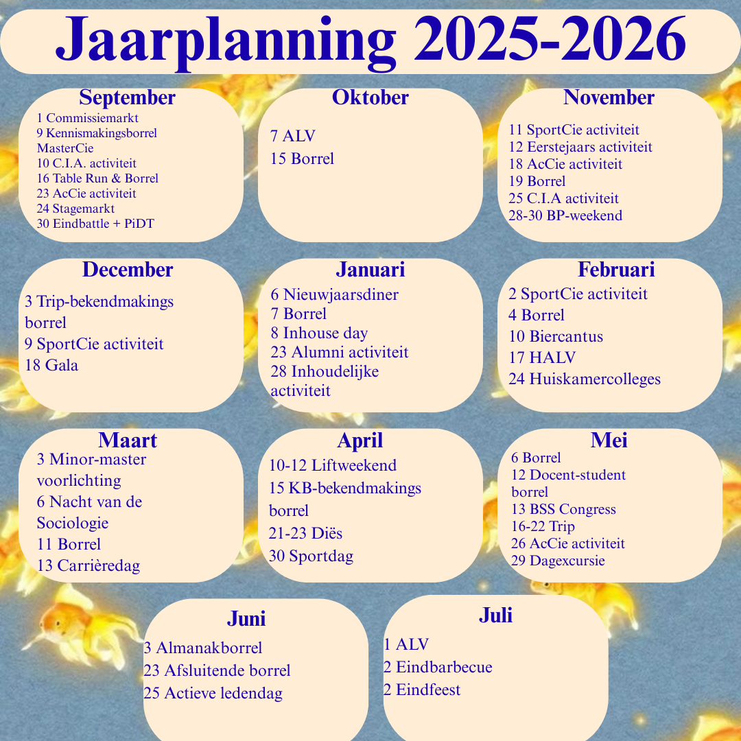Sociëtas organiseert gedurende het jaar verschillende activiteiten. Dit zijn enerzijds activiteiten gericht op het tot stand brengen van verbinding tussen de leden. Anderzijds zijn dit activiteiten die gericht zijn op de voorbereiding op de arbeidsmarkt van de socioloog. Voor ieder wat wils dus!