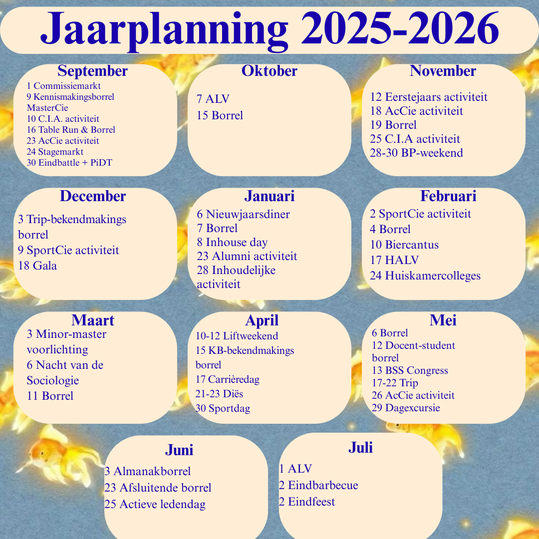 Sociëtas organiseert gedurende het jaar verschillende activiteiten. Dit zijn enerzijds activiteiten gericht op het tot stand brengen van verbinding tussen de leden. Anderzijds zijn dit activiteiten die gericht zijn op de voorbereiding op de arbeidsmarkt van de socioloog. Voor ieder wat wils dus!